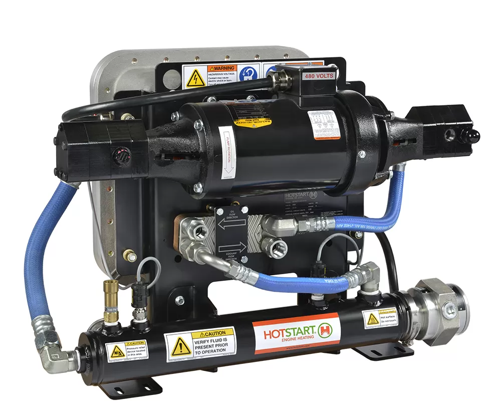 CLEモデル(Class I、Div. 1、Group Dの認証)はHotstartの製品でもっとも大容量のクーラントヒーティングシステムで、北米での防爆仕様に対応しています。ヒーター電力オプション(最大36 kW)とポンプ電力の組み合わせにより、大型エンジンの予熱・保温を可能にします。標準パッケージとして用意され、プレートを使用して取り付ける構成のこのヒー…